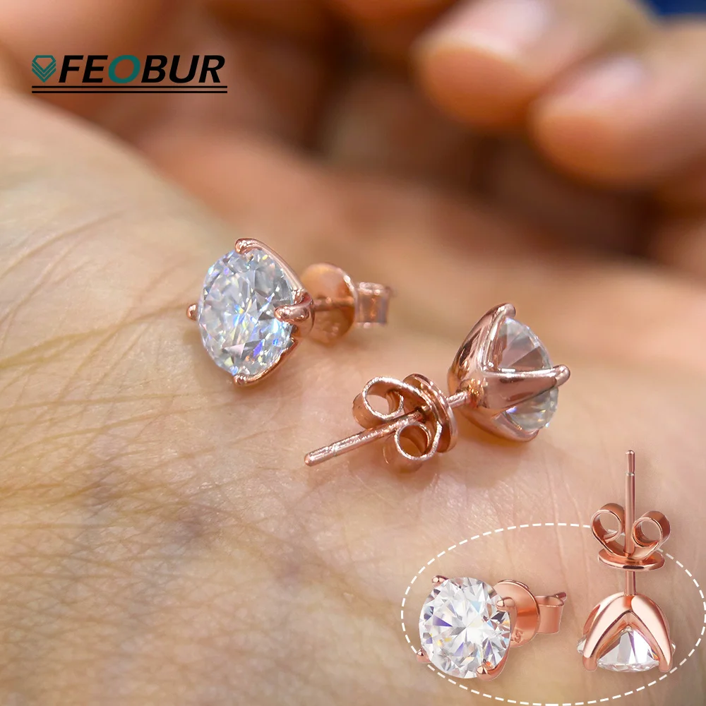 FEOBUR jiskřivý 0.2-3ct D barva moissanite diamant skoba náušnice rosegold barva 925 mincovní stříbro ženy večírek šperků dárky