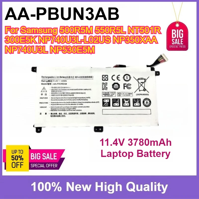 Nový AA-PBUN3AB 11.4V 3780mah notebook baterie pro Samsung 500R5M 550R5L NT501R 300E5K NP740U3L-L02US NP350XAA NP740U3L NP530E5M