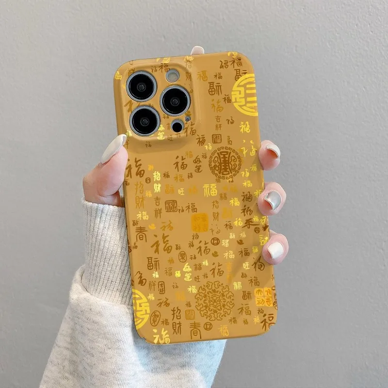 Kreativní zlatý blessing telefon pouzdro vhodný pro jablko 16PROMAX jablko 16PLUS jablko 17air jablko 17PROMAX