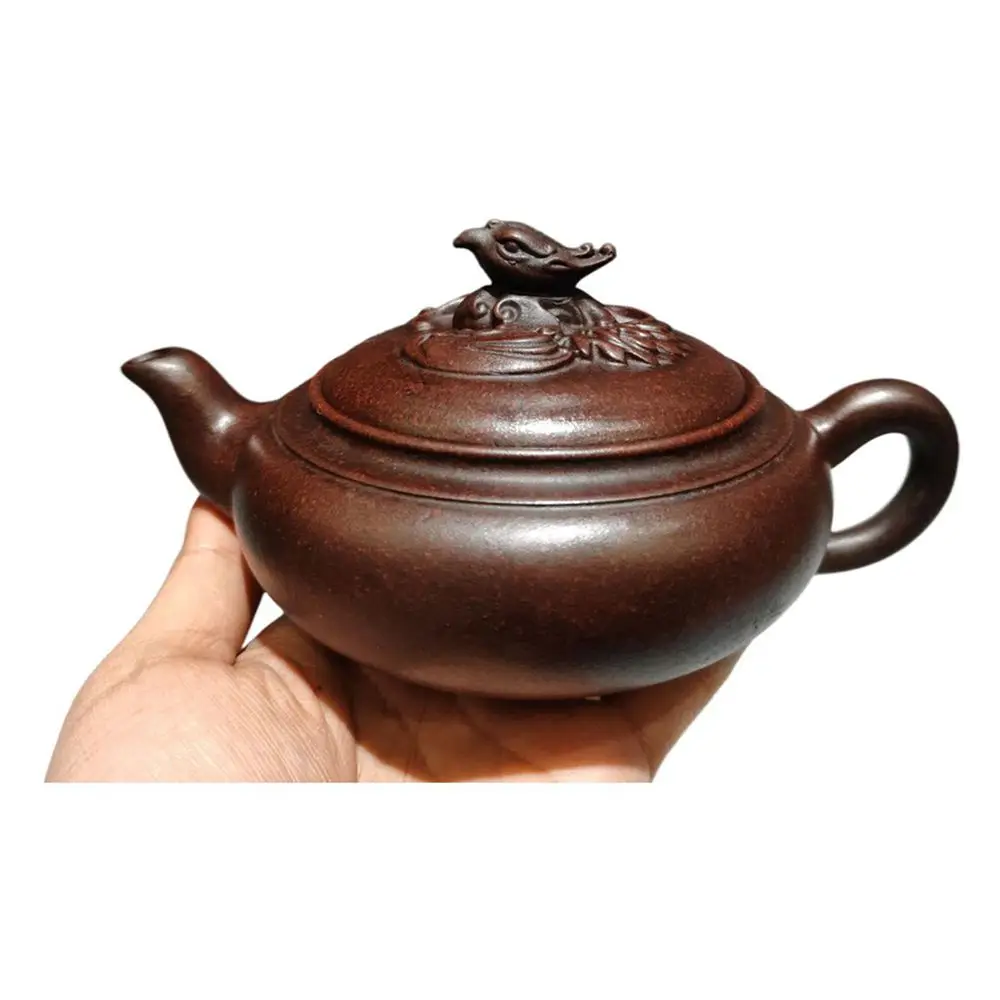 Čínské yixing zisha konvička teapots zelená čaj umělecký fénix themed sculpted reliéf vyřezávaný plochý kolo ozdobený texturované