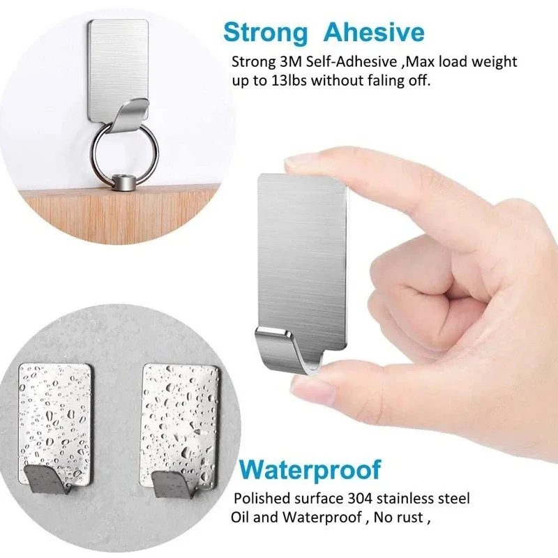 6ks nerez ocel těžký zeď ramínko háčků víceúčelové lepidlo háčků koupelna organizátor ručník držák kuchyň háčků držák