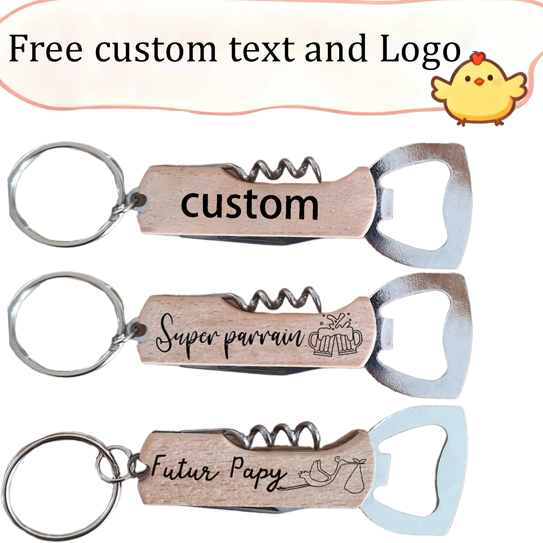 Přizpůsobené kreativní dřevěný láhev otvírač klíčenka pivo a víno láhev otvírač dva v jednom klíčenka pult svatební nestandartní dar