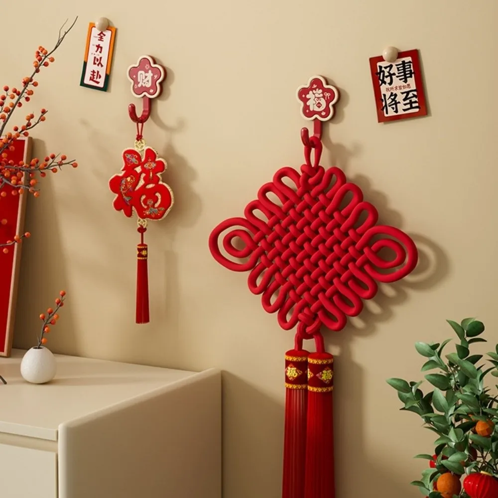 4ks ABS zeď montuje hák Čínské styl ne vrtačka dveře hák blessing slov červená jaro slavnost hák Čínské nový rok