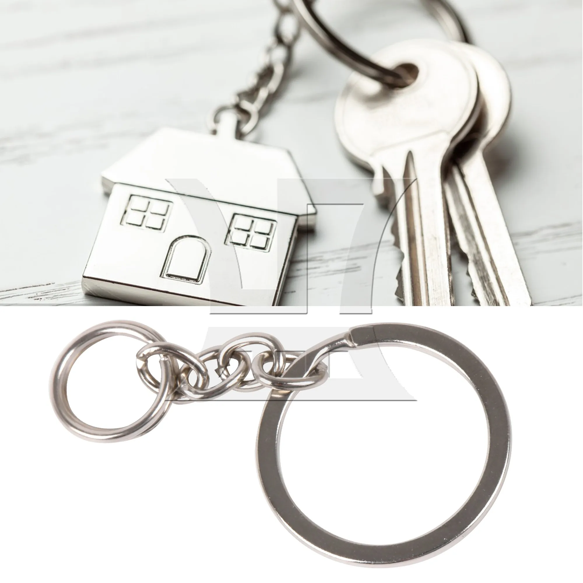 BQLZR 100ks mini buben klíčenka prsten stříbro klíč prsten pro dekorační klíčenka
