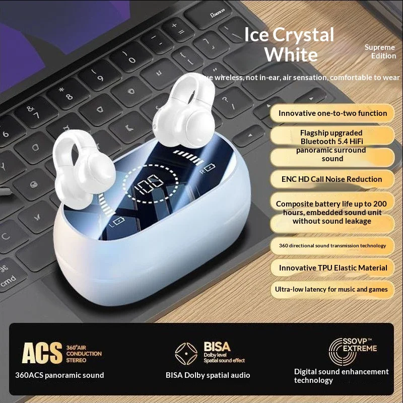 2025new přenosné audio video aparatura klip ucho kost conduction bezdrátový sluchátka dlouhé baterie život chytrý velký digitální