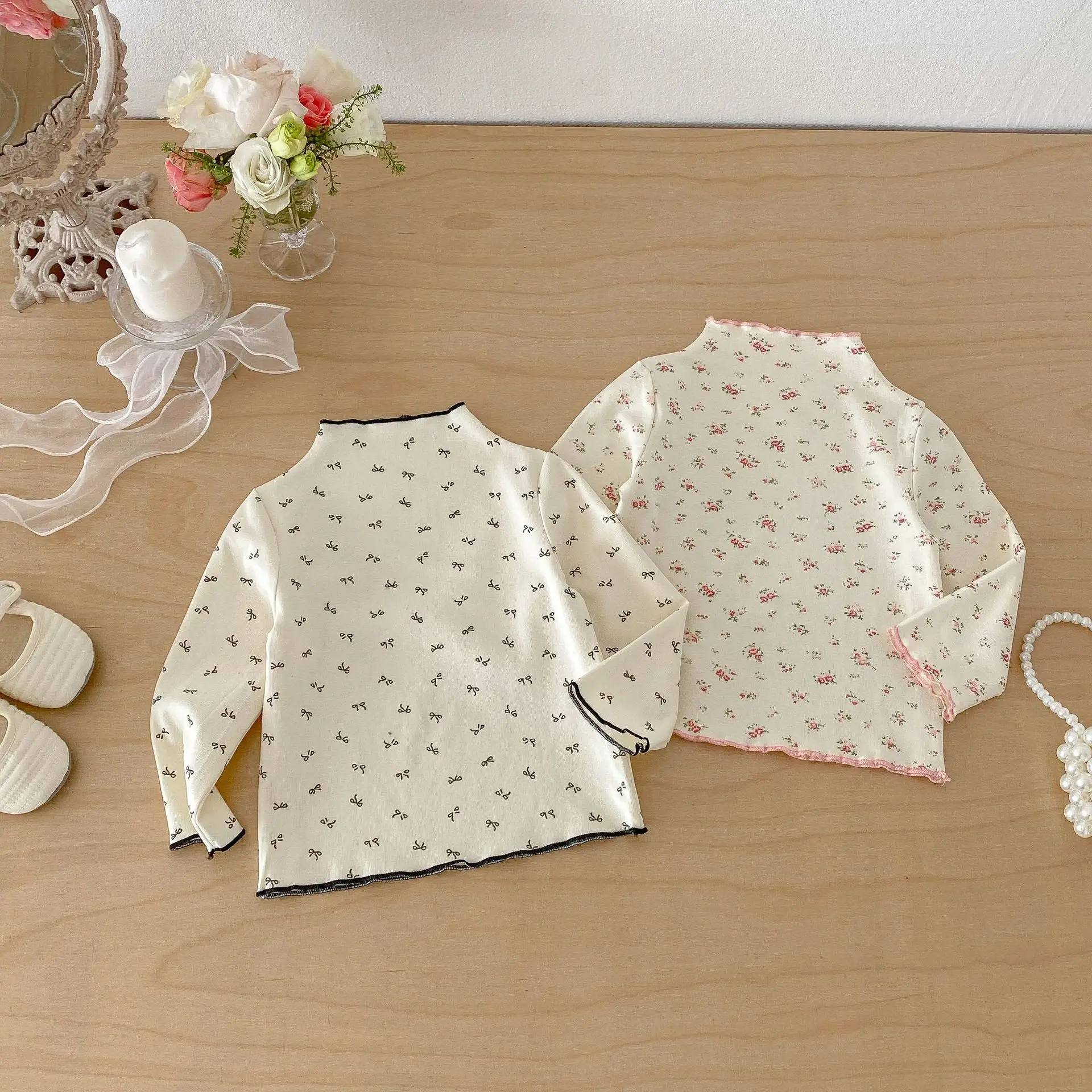 2026 jaro nový dívčí dlouhé rukáv vysoký necked T košile bavlna děťátko děvče hubený květinová bottoming košile děti topy batole oblečení
