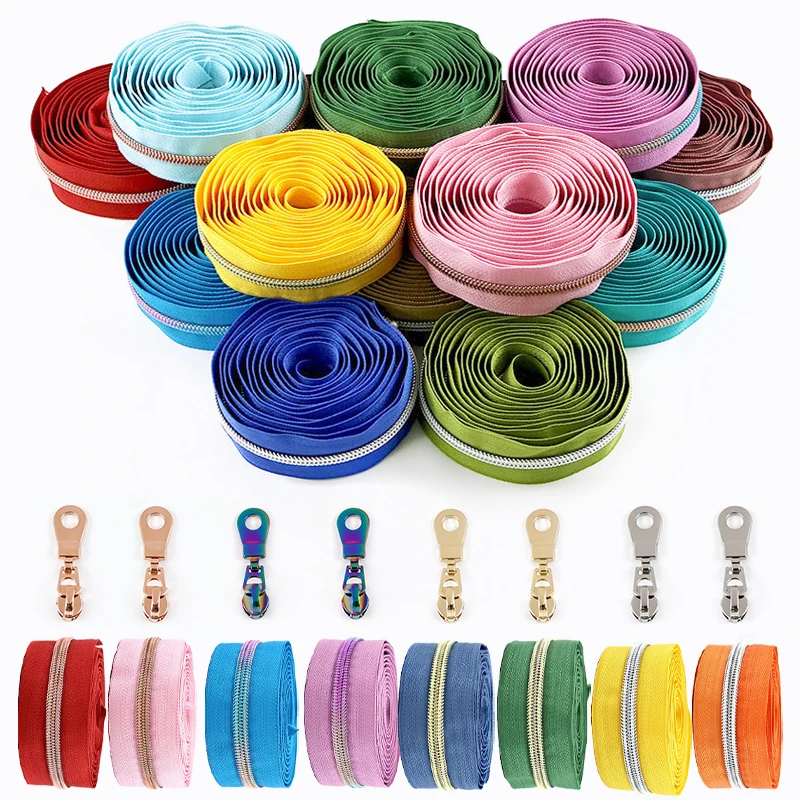 3/5M 5# barevný silon zipy páska + na zip posuvníky oblečení clousure zip pro bunda kabát zips oprava souprava DIY šicí příslušenství