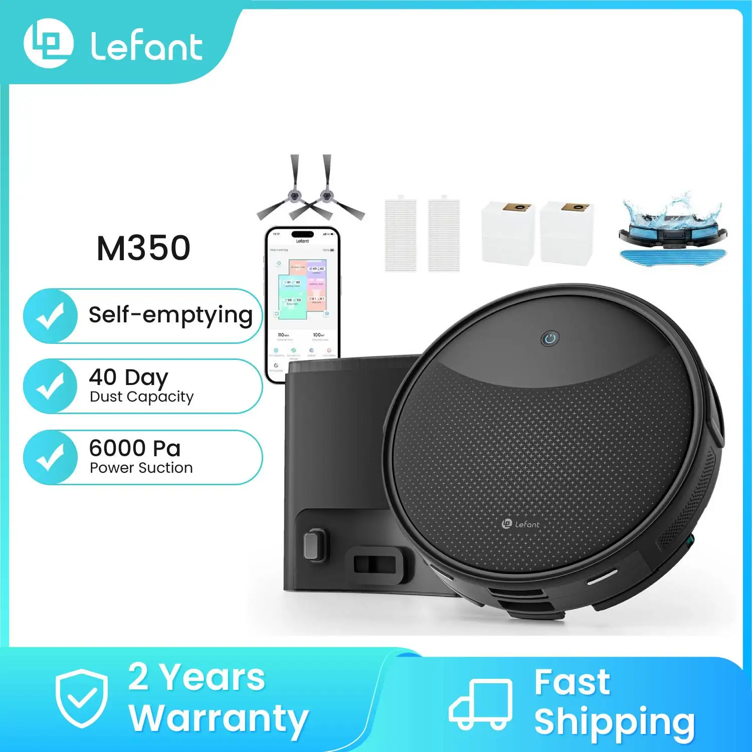 Lefant M350 self-emptying 6000pa sání roboti PSD překážka avoidance 150 min ideální pro živočich vlasy