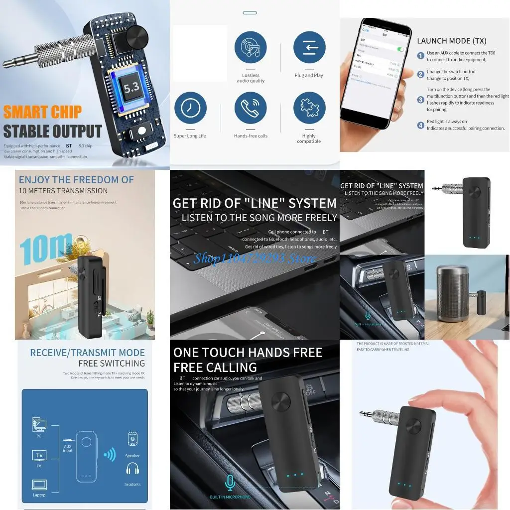 Y2GD bluetooth-compatible 5.3 přijímač rádiový vysílač bezdrátový 3.5mm aux adaptér