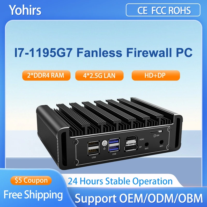 Fanless mini PC intel N150 i3 i5 i7 11th 6x 2.5G ethernetový mini pcie rozlet WIFI 4G sim okna linux openwrt pfsense firewall