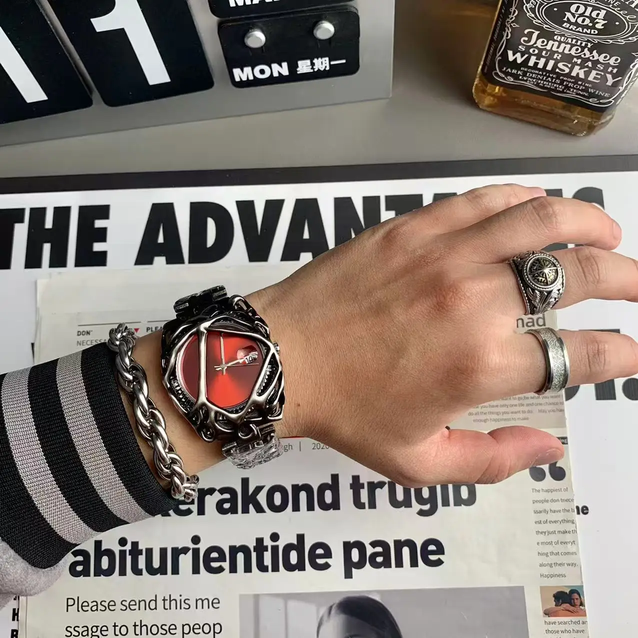 Y2k gotický stříbro ocel pánské hodinky kreativní design móda ležérní křemen náramkové hodinky pro muži pouliční oblečení punková dar hodiny