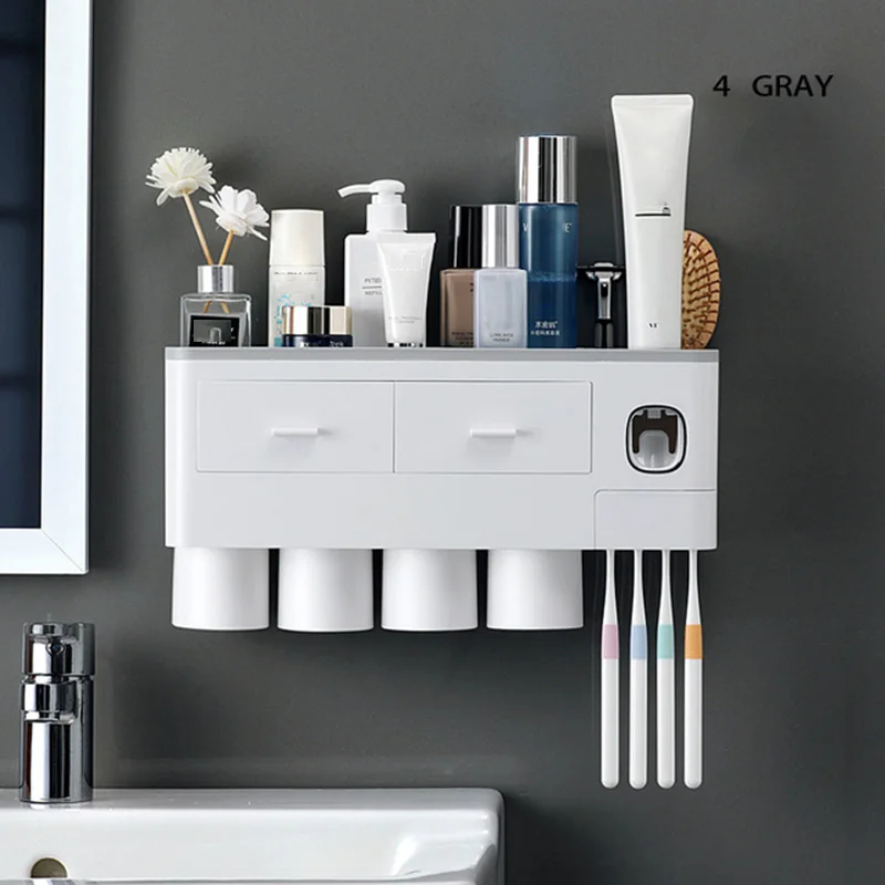 Automatický zubní pasta dávkovač držák koupelna příslušenství organizátor zeď namontovat víceúčelové toaletní potřeby úložný držák