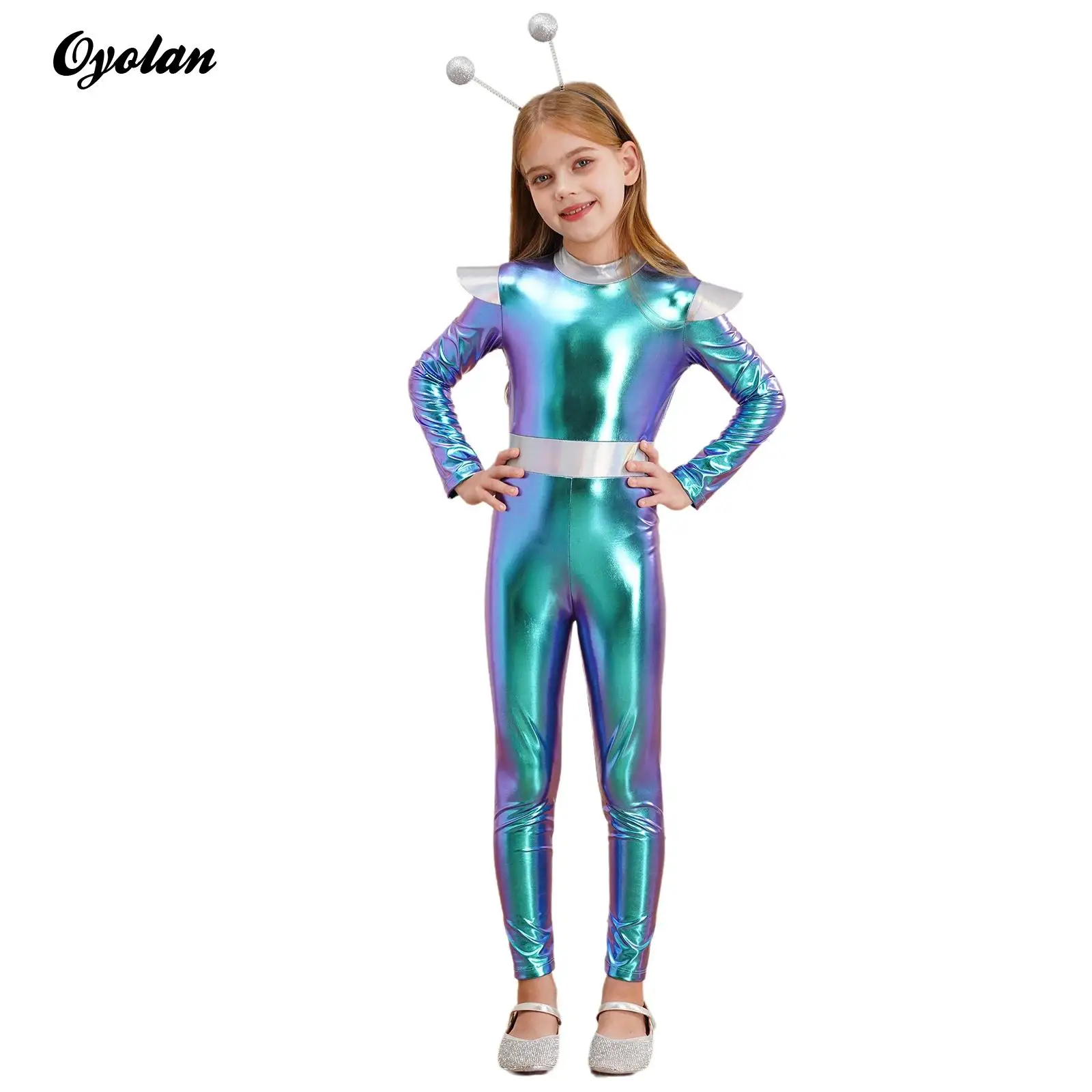 Dívčí mezera kosmonaut cizinec robot vnější mezera cosplais kostým dlouhé rukáv plný délka cizinec kombinéza s cizinec vlasy obruč