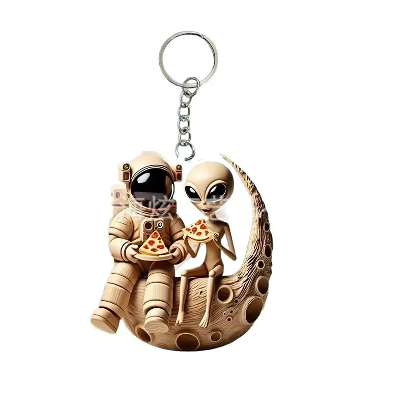 Cizinec klíčenka 2D plochý pro ženy muži legrační spaceship klíč prsten řetězy brašna přívěsek ruční večírek šperků dárky