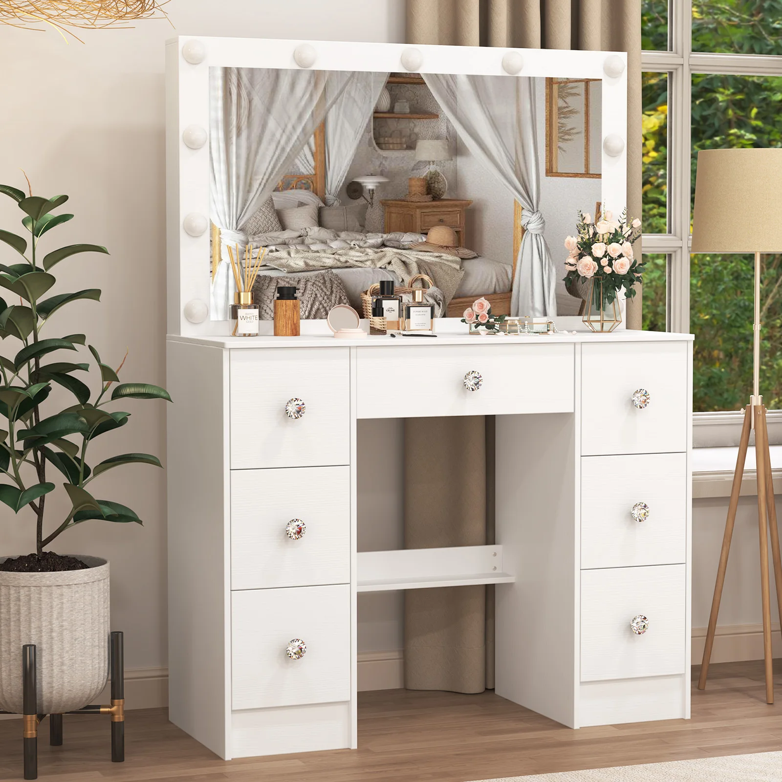 Teousev bílá marnost sada s 11pro lehký žárovky LED zrcadlo pro ženy 6pro zásuvek 3čepel barva stmívatelné lehko spojování ložnice nábytek