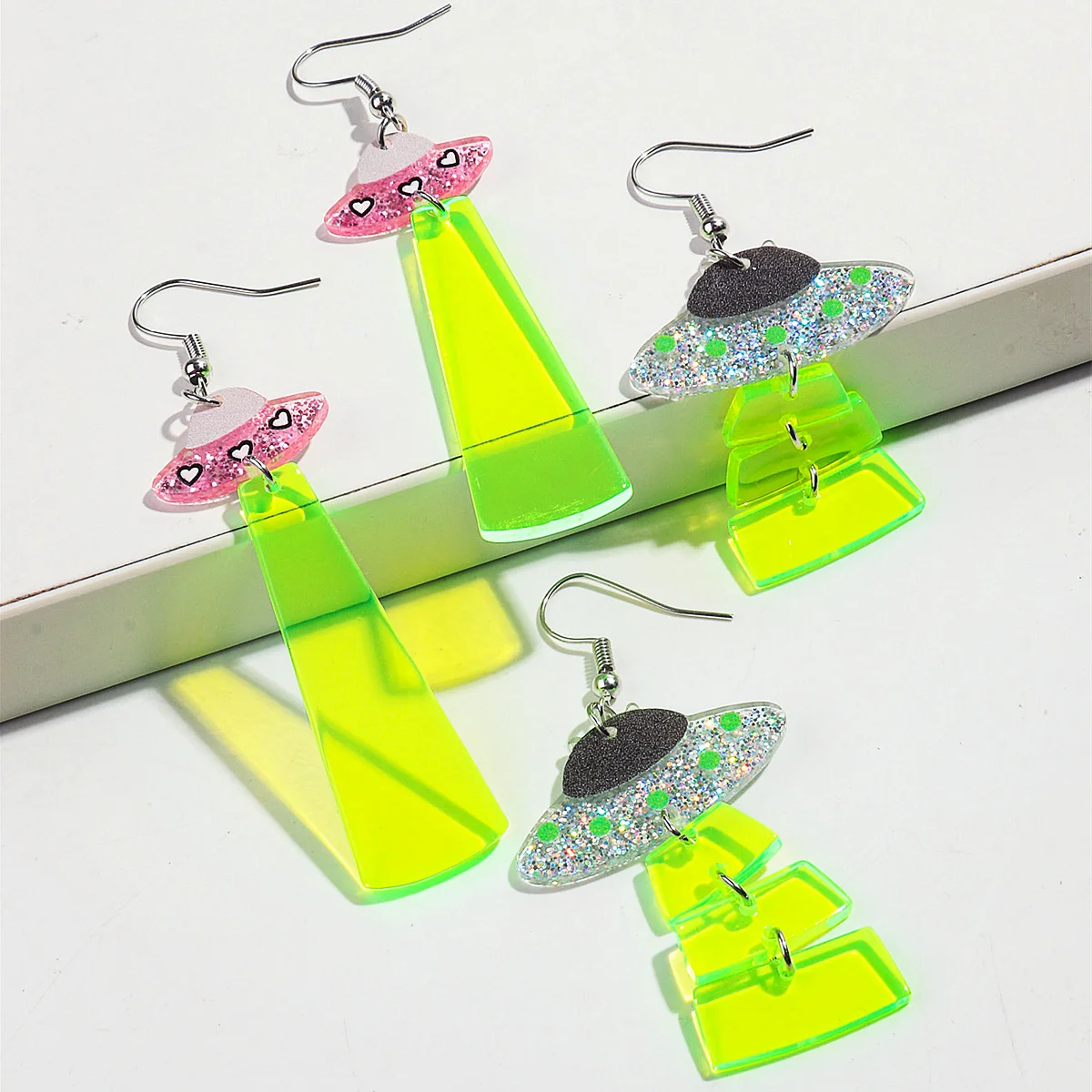 Legrační akryl neonové barva cizinec UFO náušnice pro ženy boky chmel glittery geometrické exaggerated kapat náušnice 2024 trend šperků