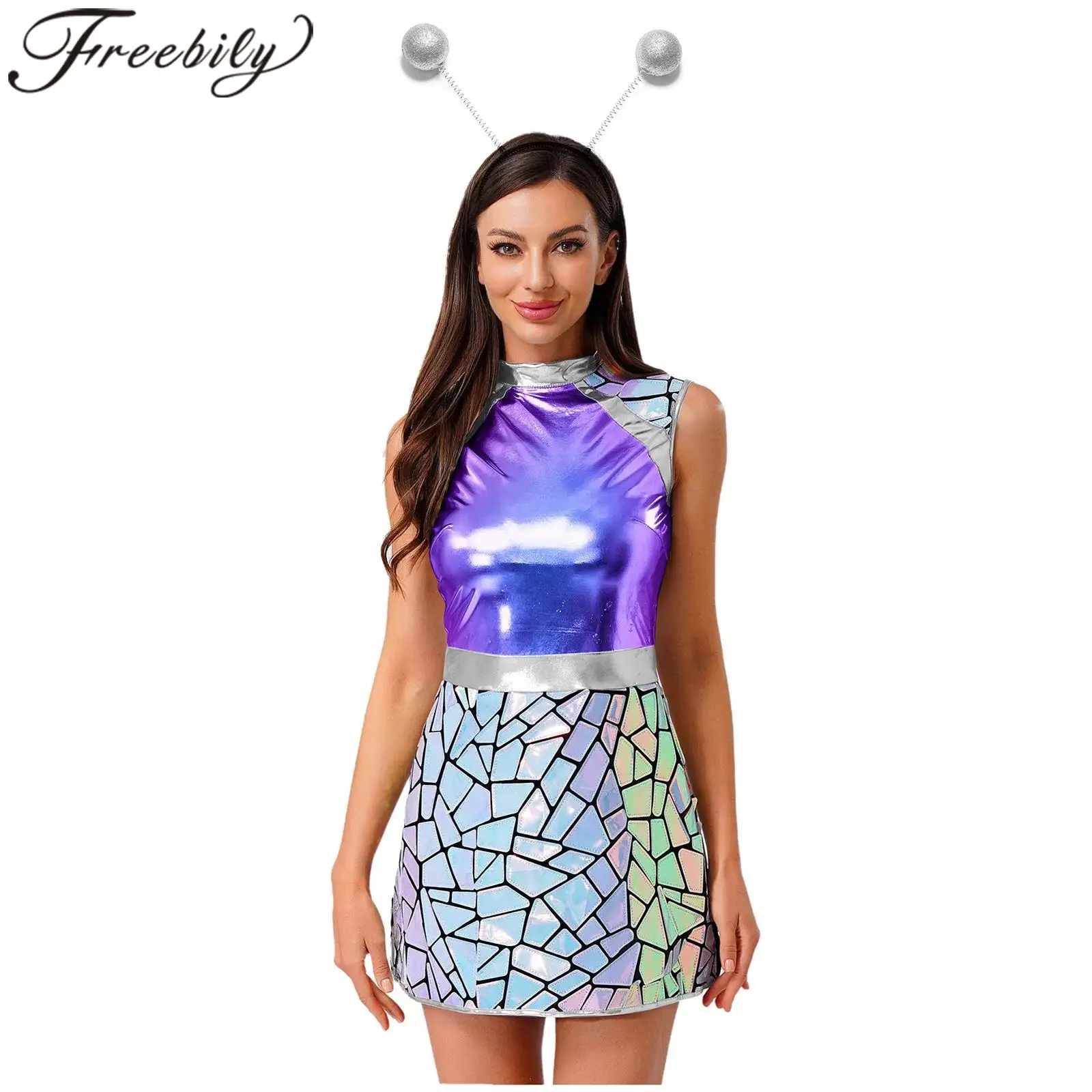 Ženy cizinec kostým metalické bojovnice obleček lesklý šaty headwear pro galaxy vnější mezera kosmonaut ženské cosplais kostýmy