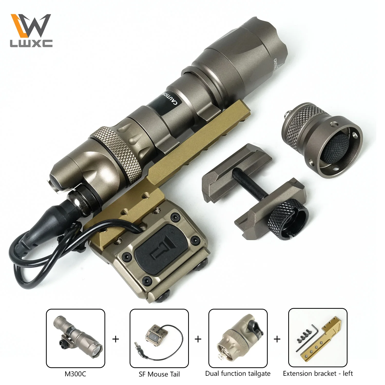 Taktická baterka sada M600C M300C LED skautské lehký s modbutton měrný tlak a naklonění prodloužení držák vhodný 20MM bariéra