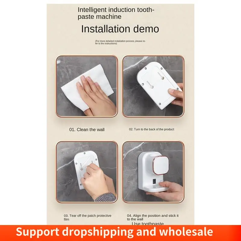 Zeď montuje automatický zubní pasta dávkovač, lehko na instalovat aniž vrtání, vhodný pro různý spirála zubní pasta trubek