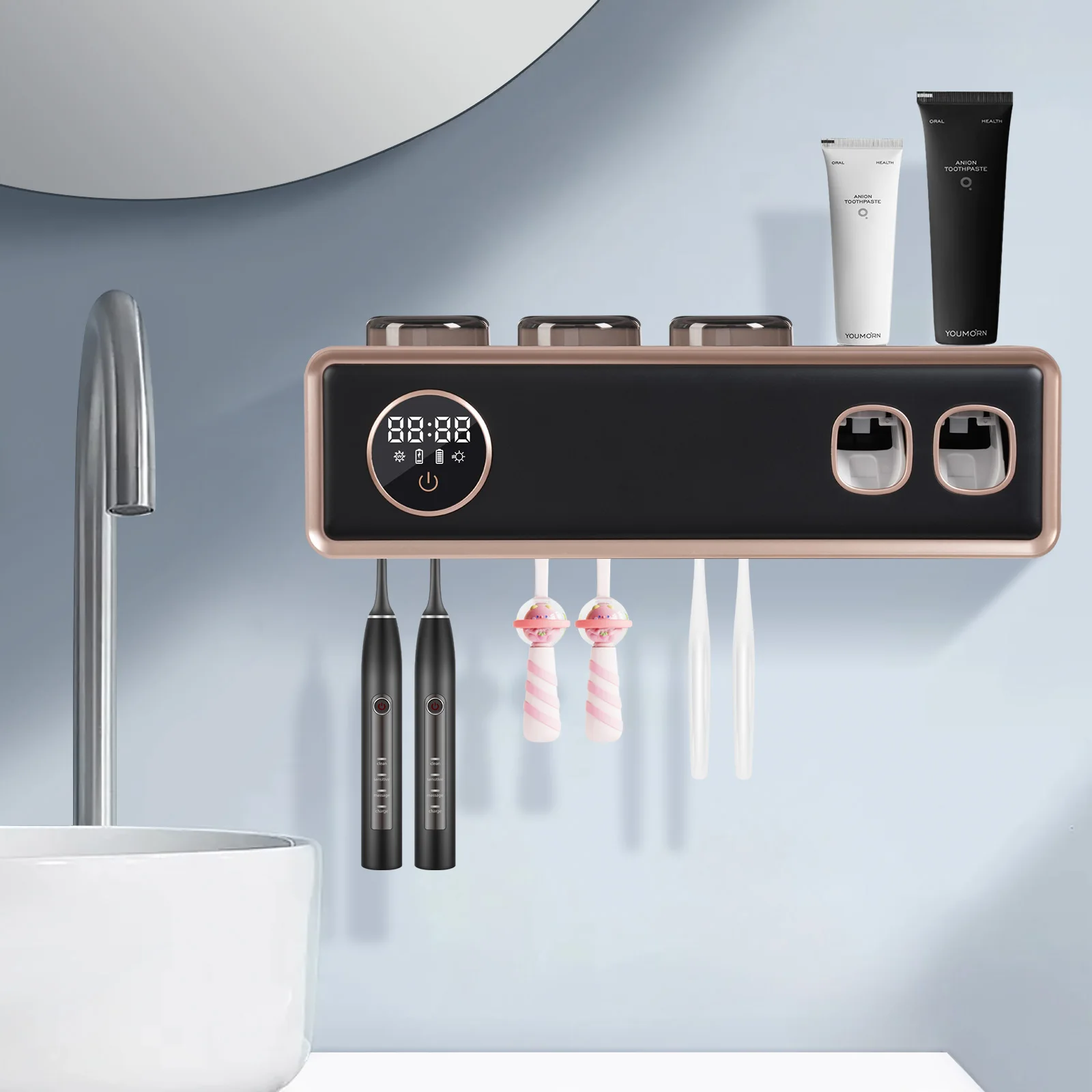 Zubní kartáček držák zeď montuje UV ultrafialové záření automatický zubní pasta dávkovač chytrý zubní pasta extrudér úložný držák