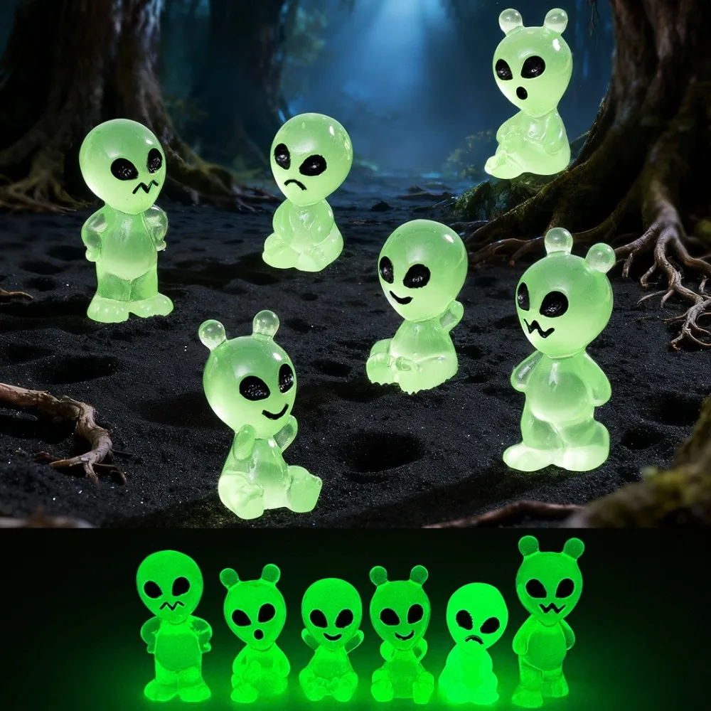 60PCS smíšené žhnoucí cizinec mini figur, psací stůl dekorace, glow-in-the-dark cizinec figurky, návod dekorační figurky, DIY řemeslo