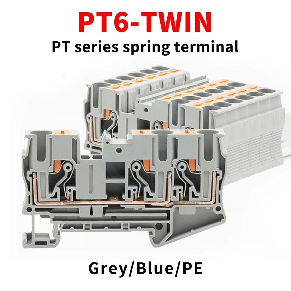 (10 pcs) PT6-TWIN single-in, dual-out quick-connect svorka blok s spring-loaded bariéra držák direct-insert svorka blok