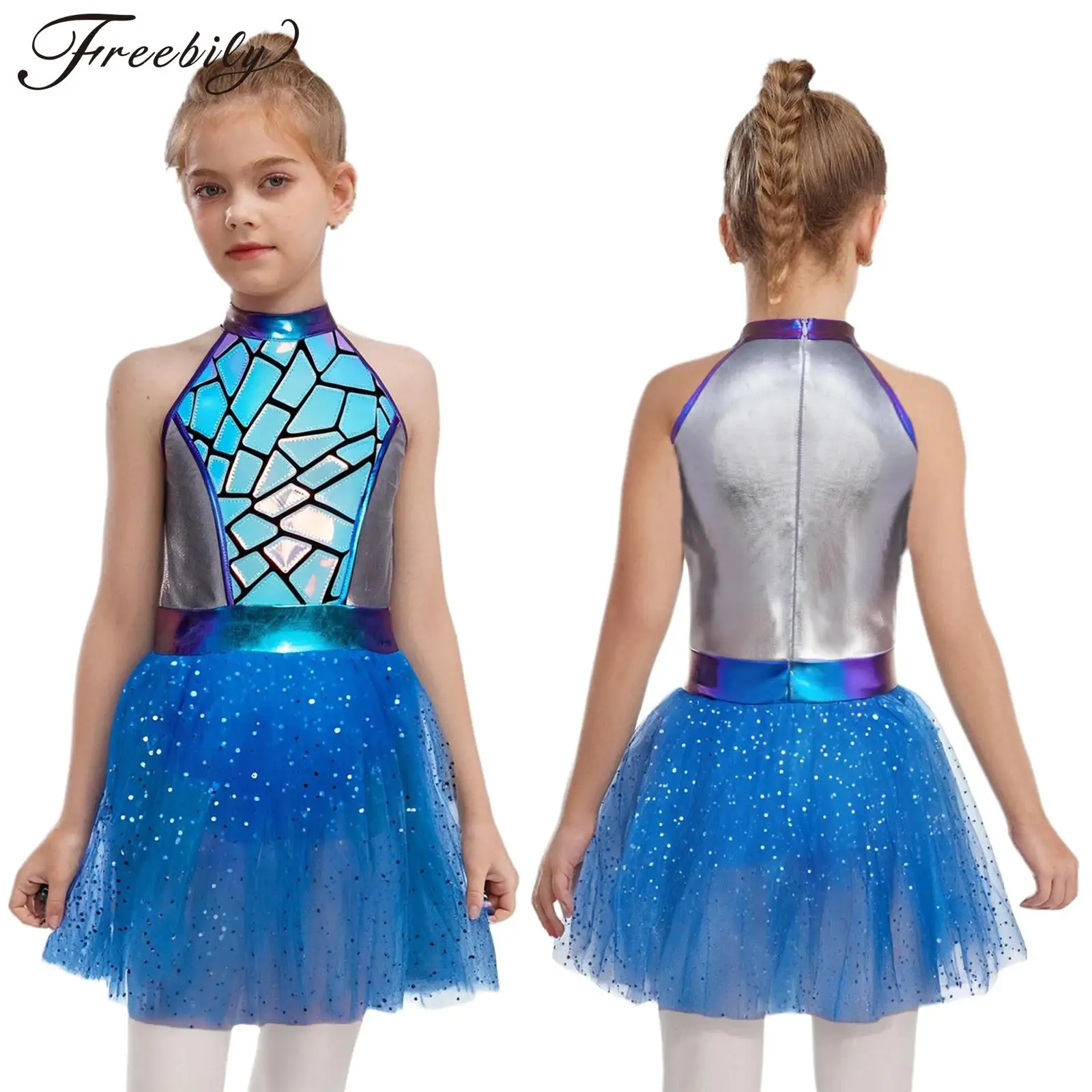 Dívčí halloween cizinec kosmonaut cosplais kostým metalické lesklý tutu šaty galaxy cestovnà­ mezera bojovnice sociální role divadelní hra oblečení