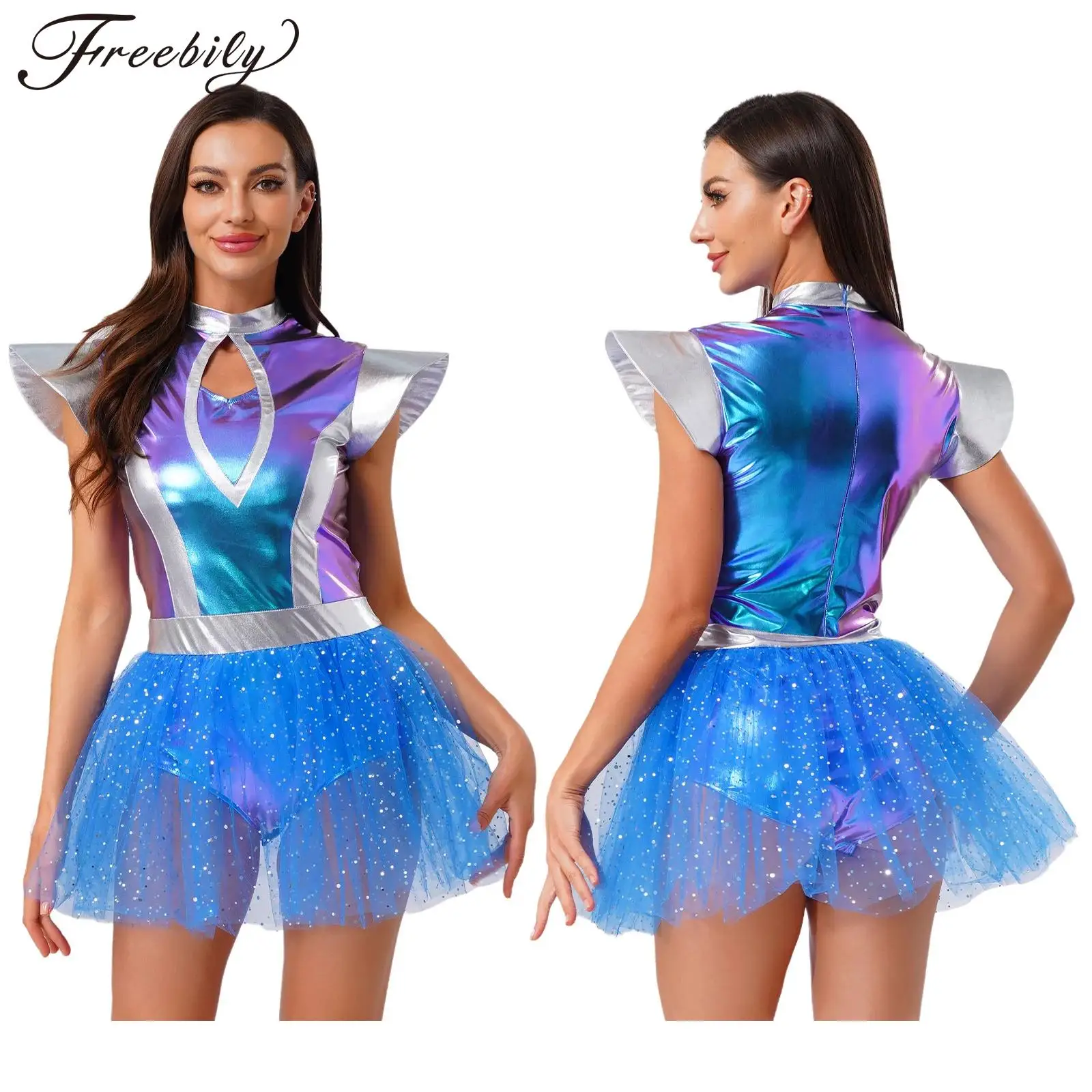 Ženy halloween cizinec cosplais šaty létat rukáv metalické lesklý tyl tutu bázeň večírek kosmonaut mezera bojovnice sociální role divadelní hra kostým