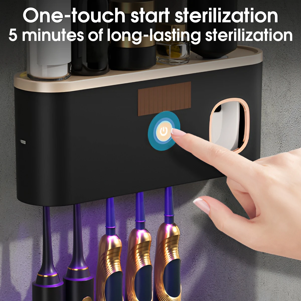 Zubní kartáček držák zeď montuje UV ultrafialové záření automatický zubní pasta dávkovač chytrý zubní pasta extrudér úložný držák
