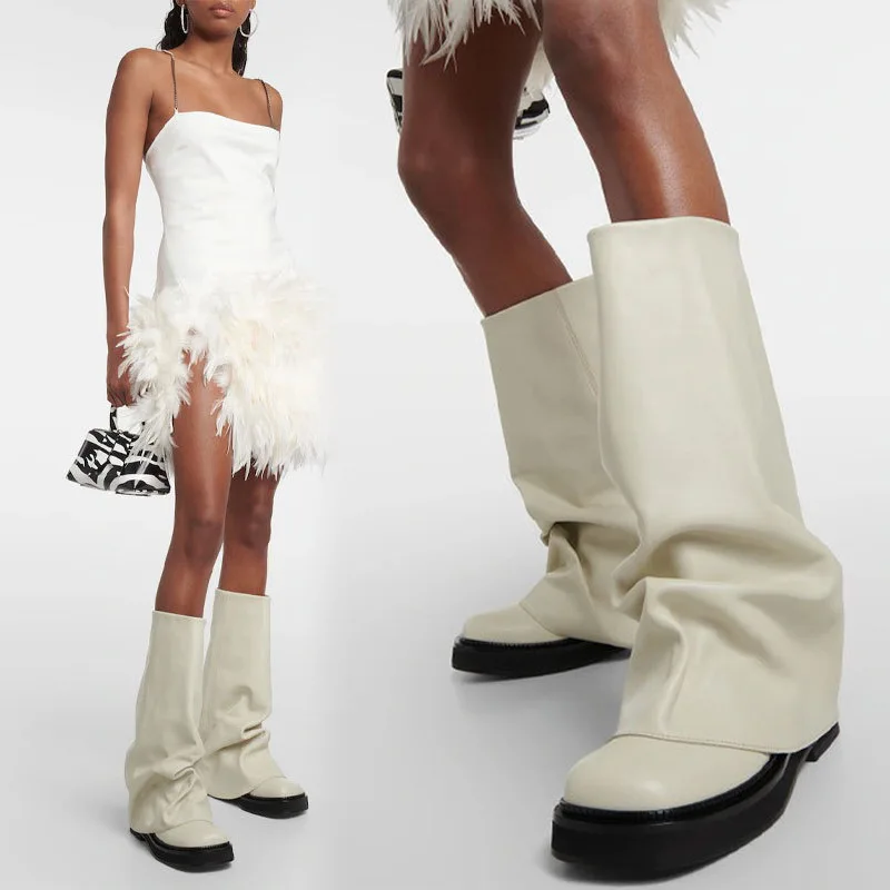 Round-toe s tlustou podrážkou plisované kalhotová boty avantgarda bojovnice knee-high botines velký velikostech navlékací botas femininas