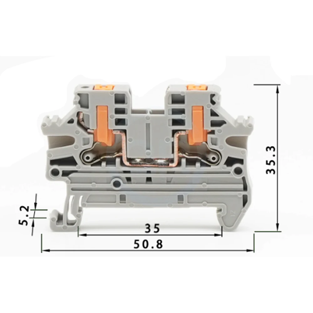 (50 pcs) PTV2.5 spring-loaded tool-free rail-mounted side-entry quick-connect svorka blok, 2.5mm² PTV-2.5