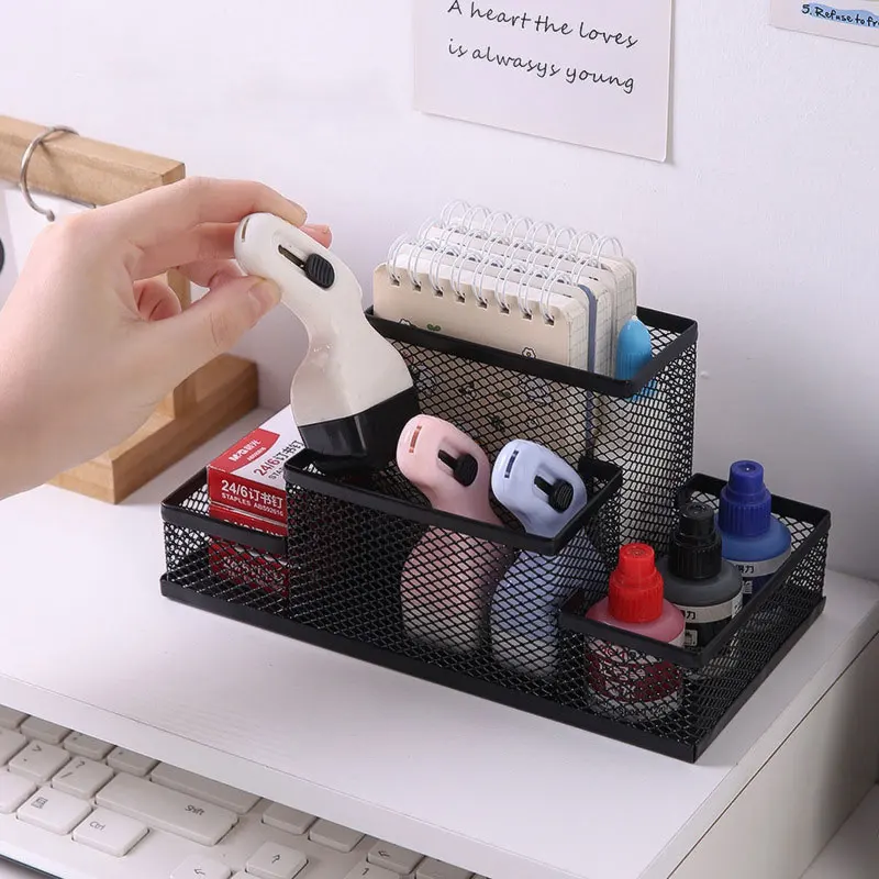 Pletivo psací stůl organizátor plocha organizátor úřad zásoby caddy tužka držák úložný košíky psací stůl příslušenství přihrádek černá
