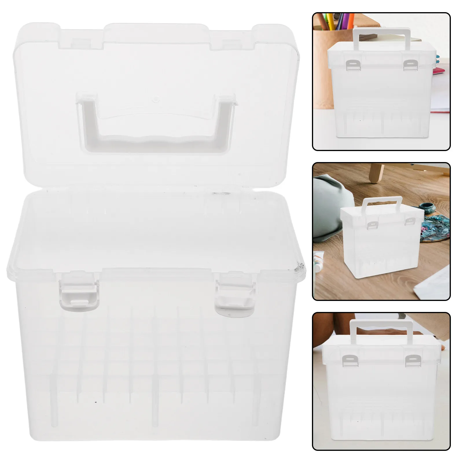 Průhledná záložka úložný skříňka s přenosné madlo velký schopnost organizátor pro fixy pera pastelky kresba sada papírnictví