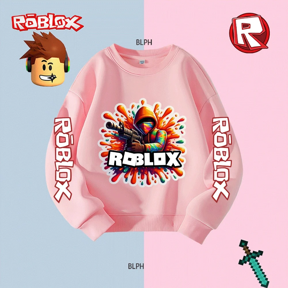 Děti roblox bojovnice povaha potištěné mikina, chlapci dívčí ležérní dlouhé - rukáv mikina, móda kreslený hra - themed pulovr