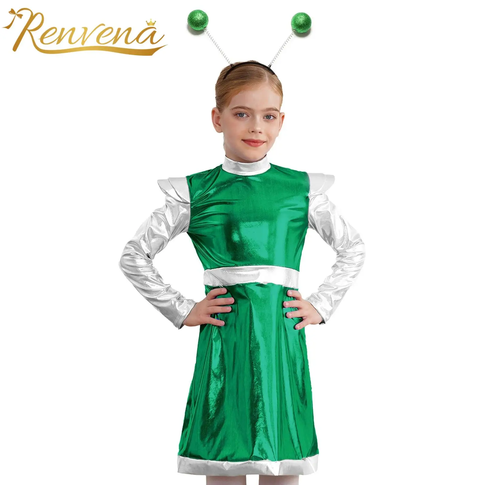 Ženy děti cizinec vlasy obruč vnější mezera legrační cizinec outerspace cosplais kostým themed večírek roleplay kostým karneval šaty nahoře