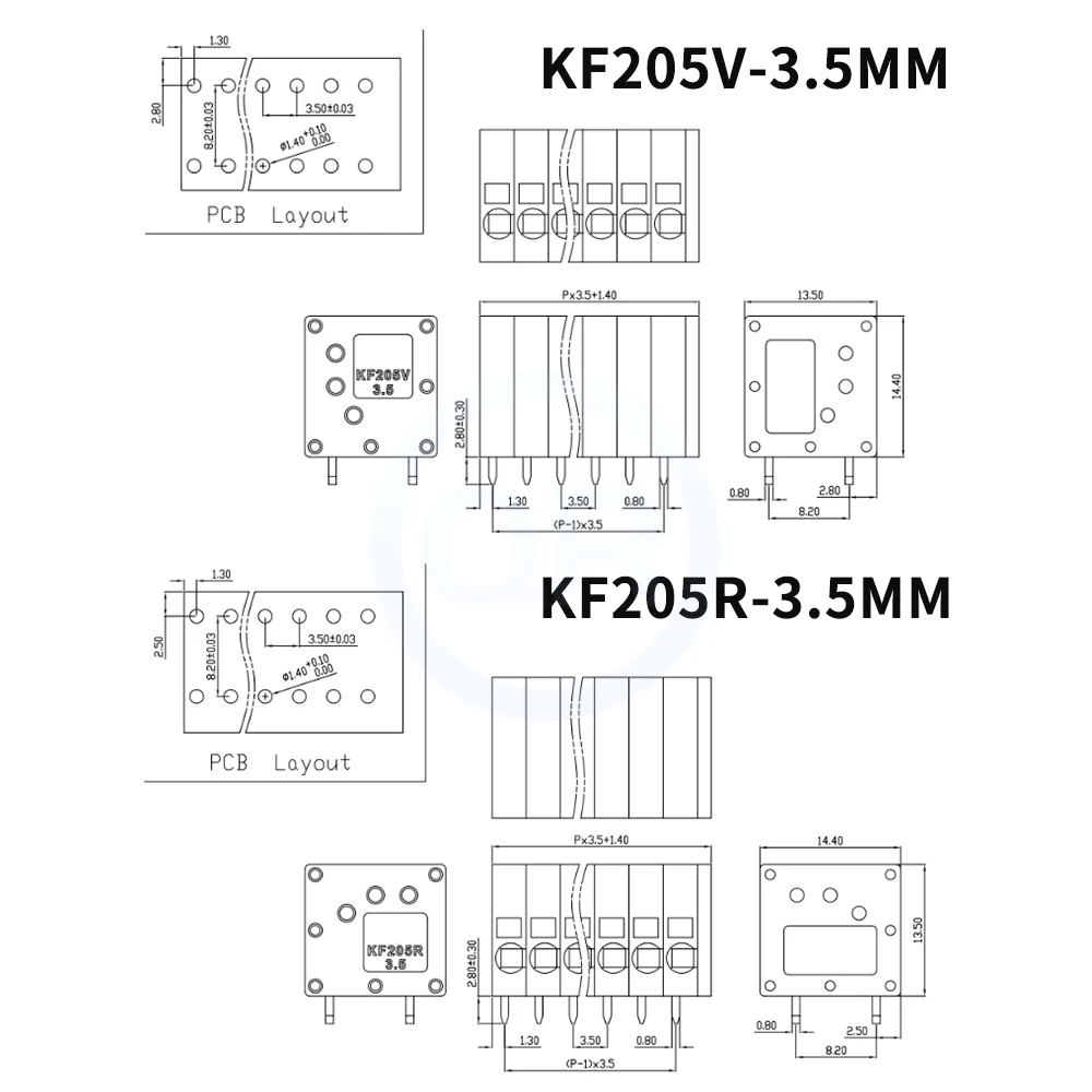 (5 pcs) KF205V KF205R 3.5mm 5.0mm 7.5mm 10.0mm bezšroubové jaro naložený svorka blok 205V / 205R PCB (desky plošných spojů) 2-12pin DG 271V / 271R