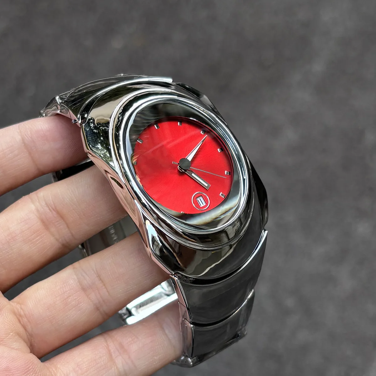 Y2k stříbro červená ciferník křemen hodinky pánská neobyčejný čepel kreativní cizinec vzhled design čepel móda číslo jednotné ocel muži hodinky AAA hodiny