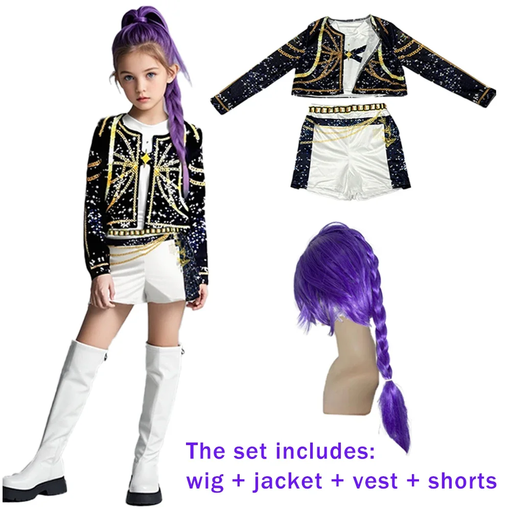 Halloween kostým rumi cosplais kpop bojovnice kostým paruka přestrojení rummy děvče narozeniny večírek dar karneval představení oblečení sada