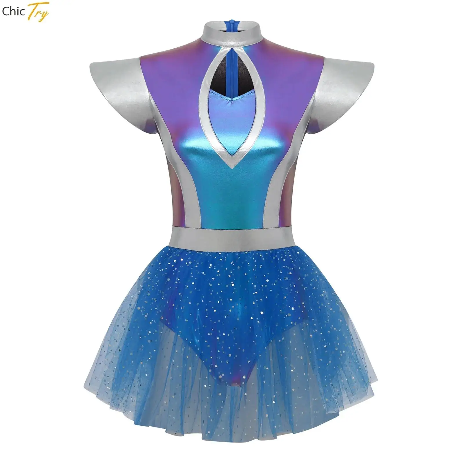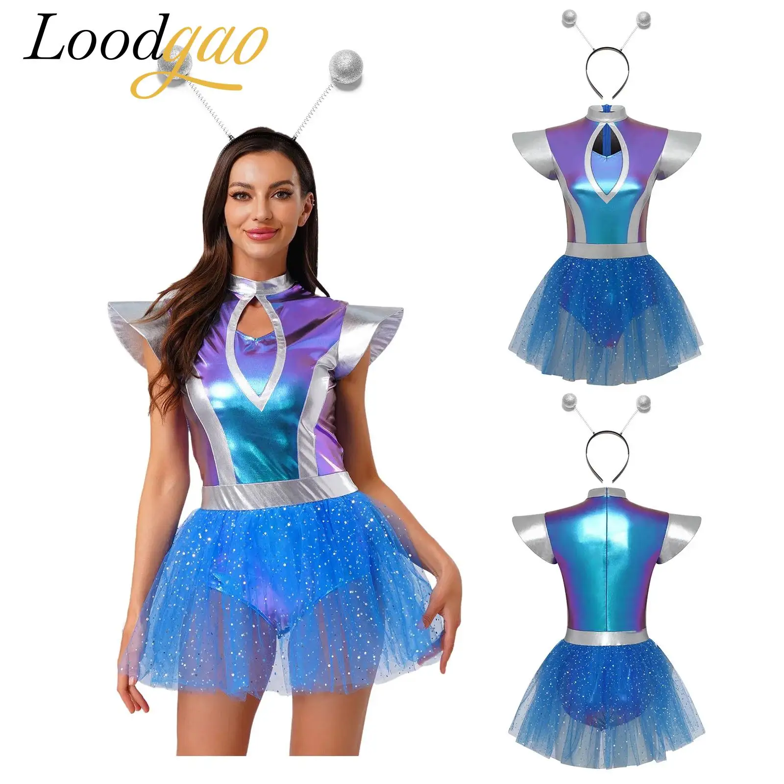 Ženy cizinec kosmonaut mezera bojovnice cosplais kostým metalické cizinec tyl tutu trikot šaty pro halloween tančí večírek šaty nahoře
