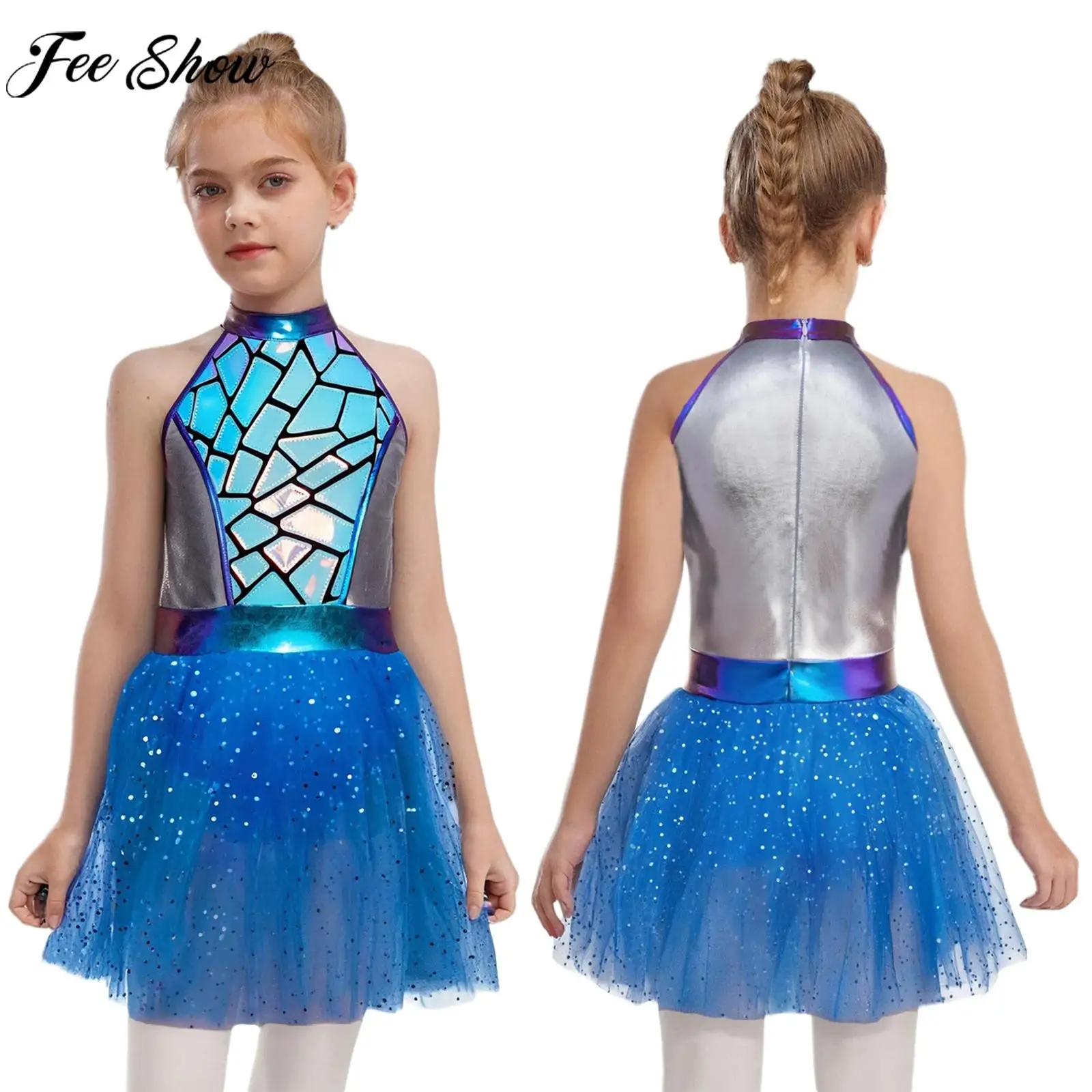 Teen dívčí halloween bázeň večírek cizinec kosmonaut mezera bojovnice cosplais kostým balet tančit tutu metalické lesklý trikot šaty