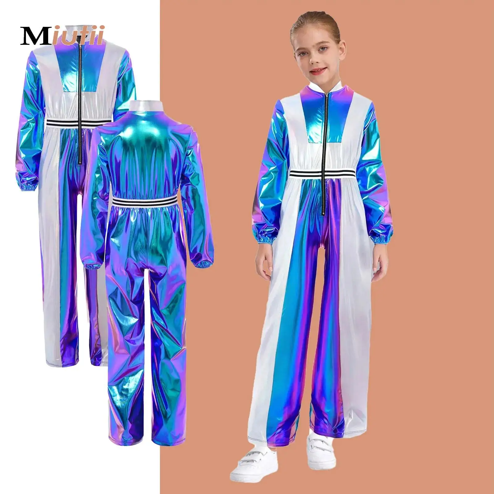 Dospívající cizinec cosplais kostým chlapci dívčí metalické barva blok cizinec kombinéza halloween plný délka kombinéza pro džez tančit hip-hop
