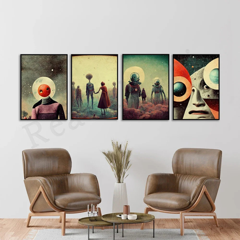 Symbióza - vintage cizinec artwork, cizinec plakátů, spaceman umění, vintage mezera plakátů, cizinec otisků, surreal umění plakátů