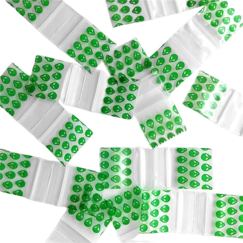 25x25mm PE plastový zip zapečetěné baggies zelená cizinec tisk 100ks zip zamknout úložný pytle 5mil 1010 Y027
