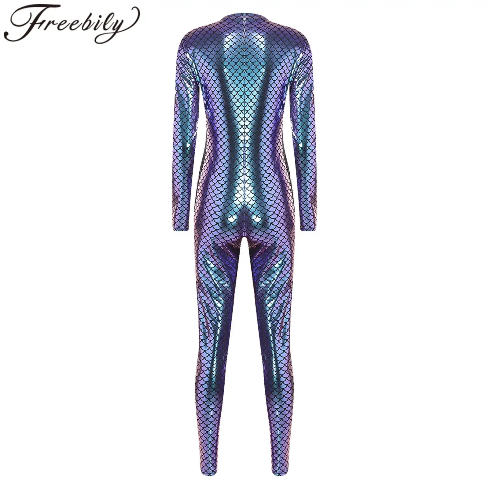 Ženy mořská panna fish-scale tisk metalické lesklý kombinéza maškaráda kamaše full-body kombinéza unitard kněžna cosplais obleček