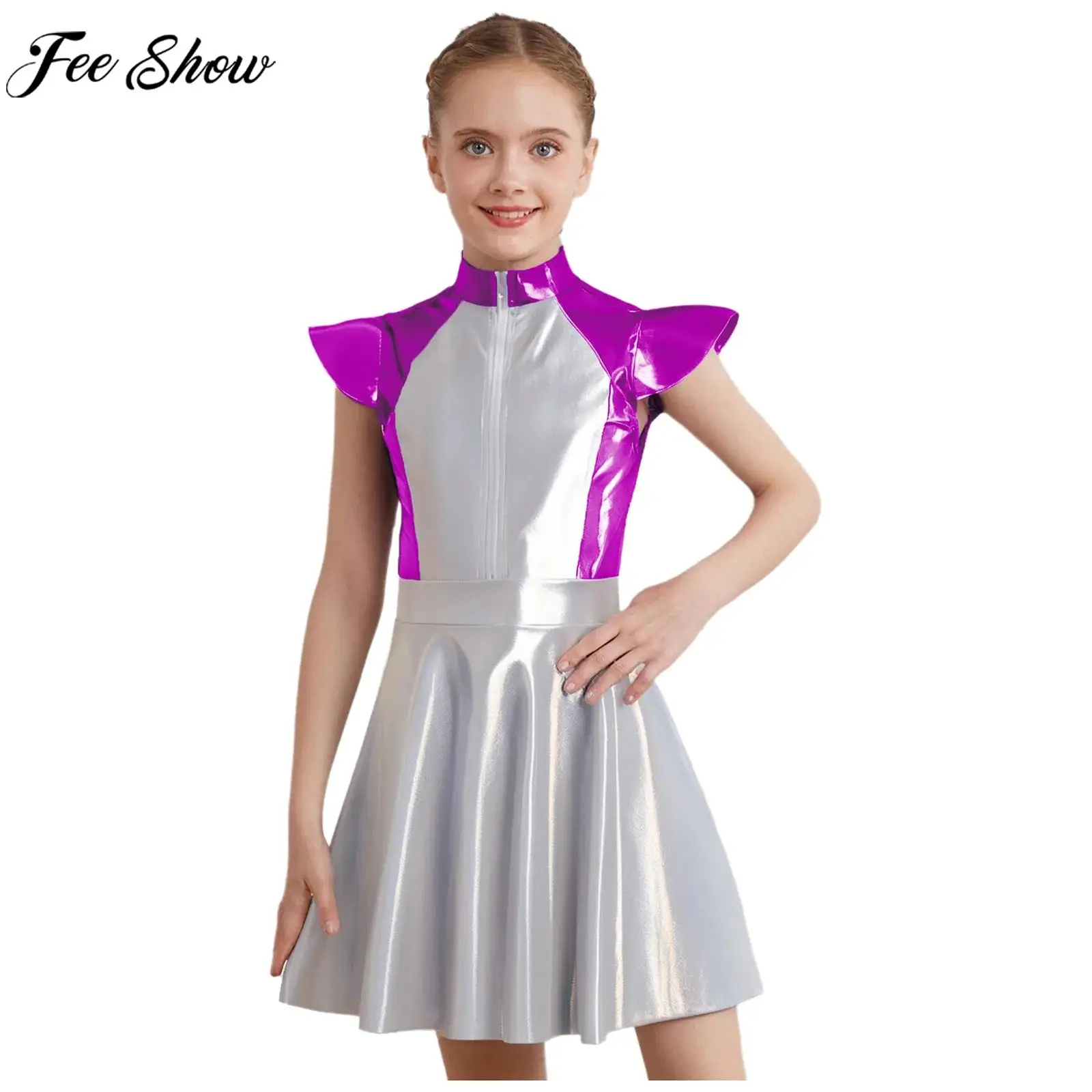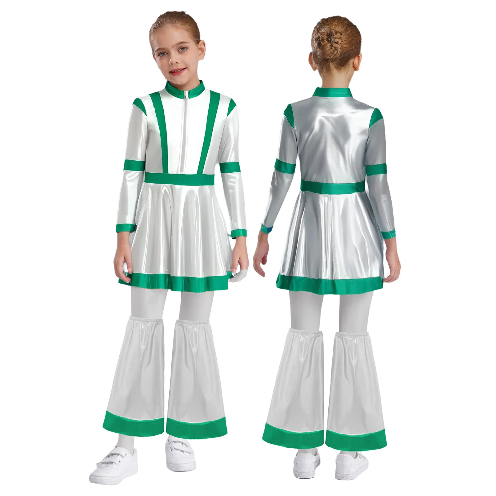 Dívčí halloween cizinec kostým dlouhé rukáv metalické lesklý šaty s noha kryty pro robot galaxy cestovnà­ bojovnice mezera cosplais