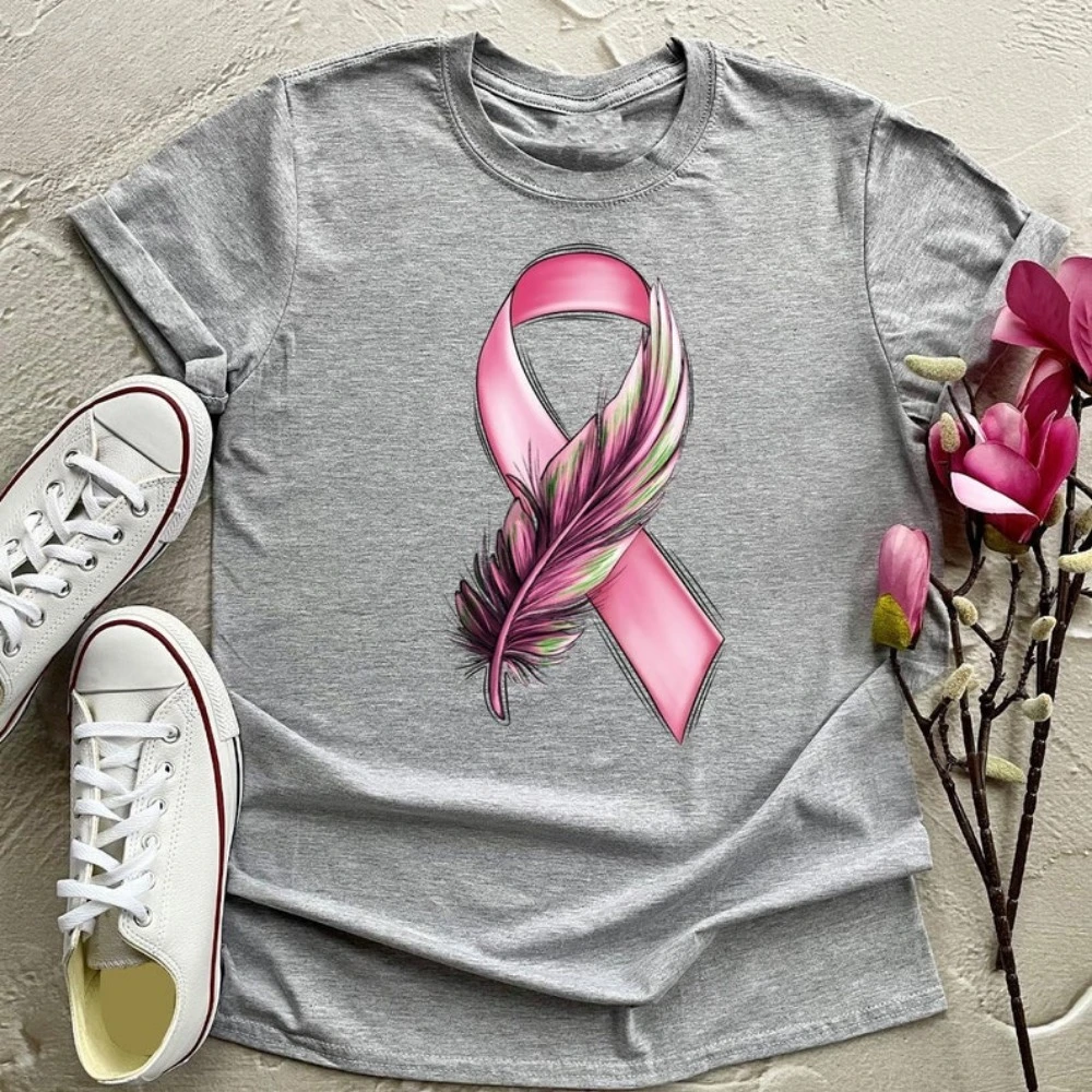 Hruď rak vědomí košile peří grafické tees růžová stuha oblečení košile pro ženy bojovnice vneck tričko