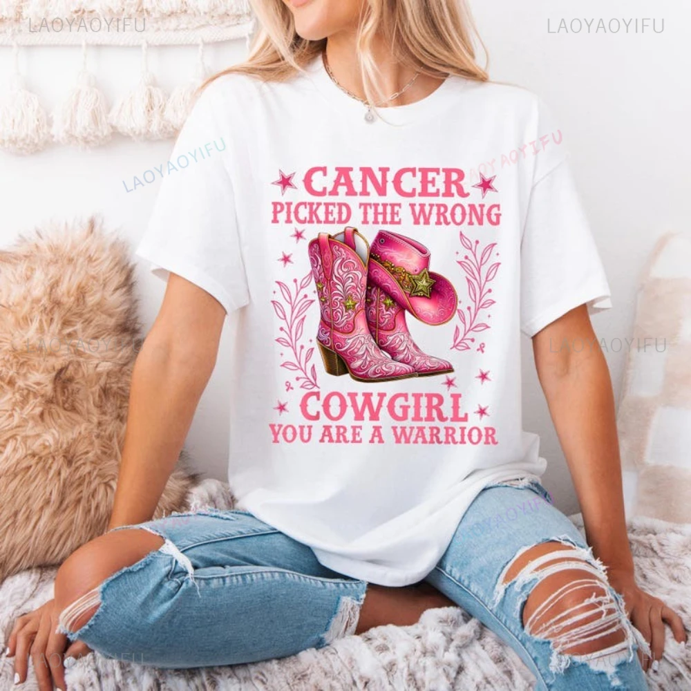 Rak picked bezpráví cowgirl jejích jsou A bojovnice grafické T košile hruď rak vědomí bojovnice žena muž bavlna tričko