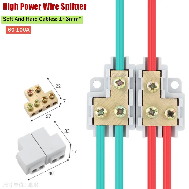 60-100A t-shaped měď svorka blok drát svěrka rozbočovač high-power rychlý kabel konektor 1 v 2/4 vyndat měď drát konektorů