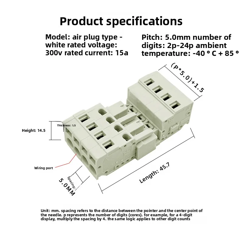 Mcs-5.0mm jaro typ pánský a ženské pár konektor screw-free zásuvné svorka blok bílá 2P-24P