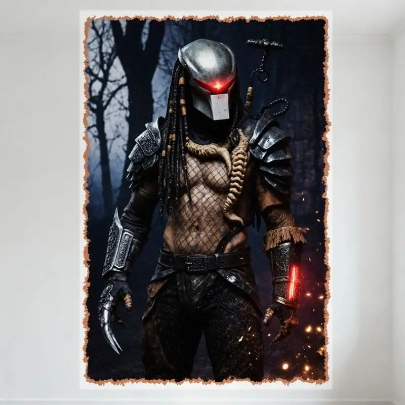 Dravce bojovnice sci - fi cizinec kov plechovka značka temný mlhavý les retro zeď dekorace pro pult domácí kavárna hrůza film plakát umění 8x12